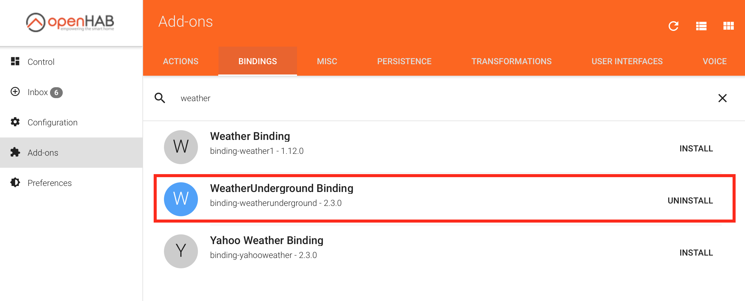 Damit es losgehen kann muss das WeatherUnderground Binding installiert werden. Das erledigst du am besten über die PaperUI.