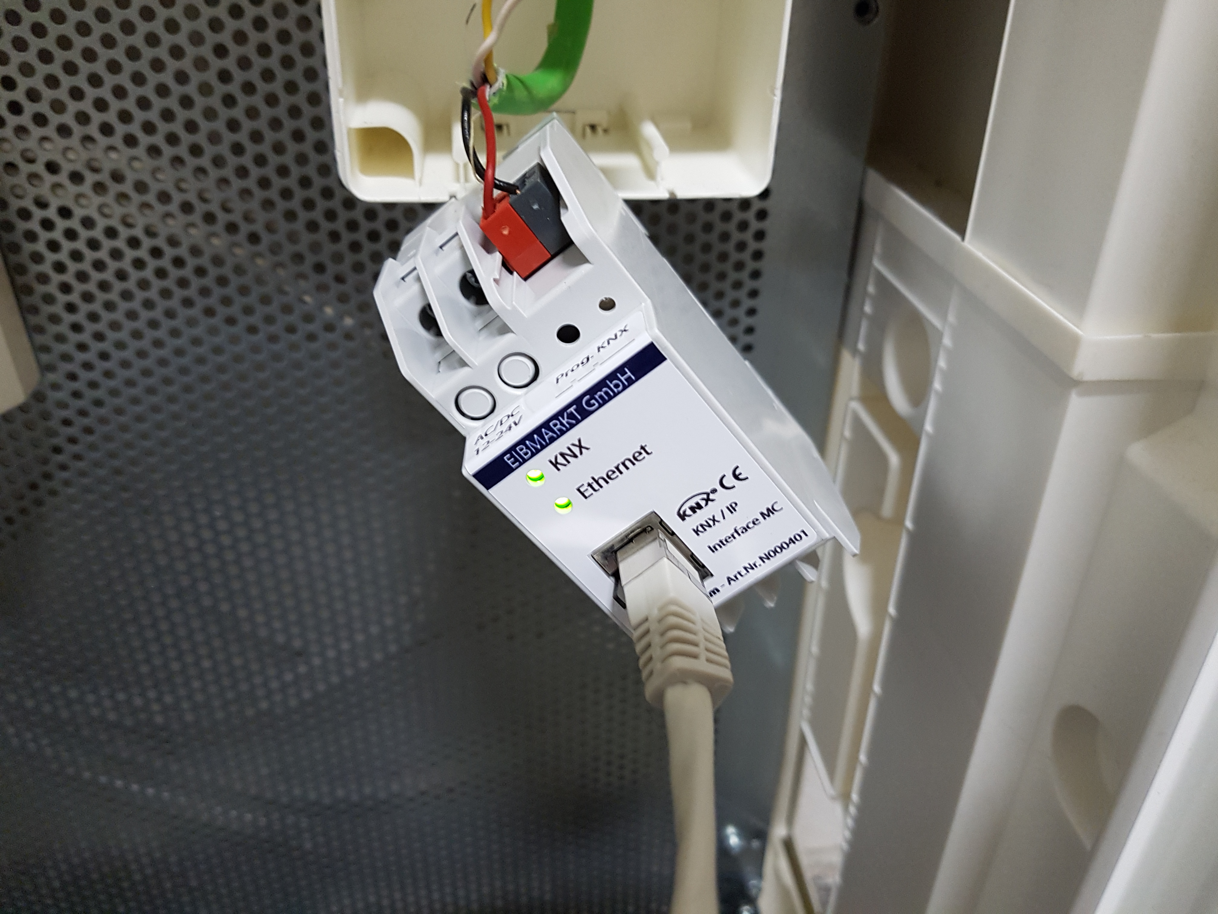 Der Anschluss des KNX IP Gateway ist recht simpel. In meinem Fall habe ich die alte serielle BUS Schnittstelle entfernt und die Anschlussklemme mit meinem neuen IP Gateway verbunden. Aktuell ist das ganze noch eher fliegend gelöst – aber was nicht ist kann ja noch werden. Danach das Netzwerkkabel (mit PoE) anstöpseln – fertig. Idealerweise ist im Netzwerk DHCP aktiviert, damit die Schnittstelle automatisch eine IP zugewiesen bekommt. Die IP Adresse findest du am leichtesten in der Netzwerkübersicht des Routers (z.B. FritzBox) heraus.