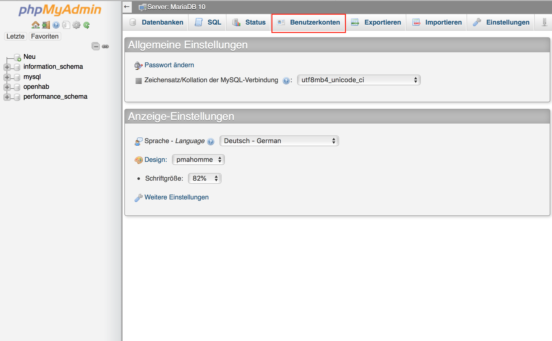 Datenbankname: openhab