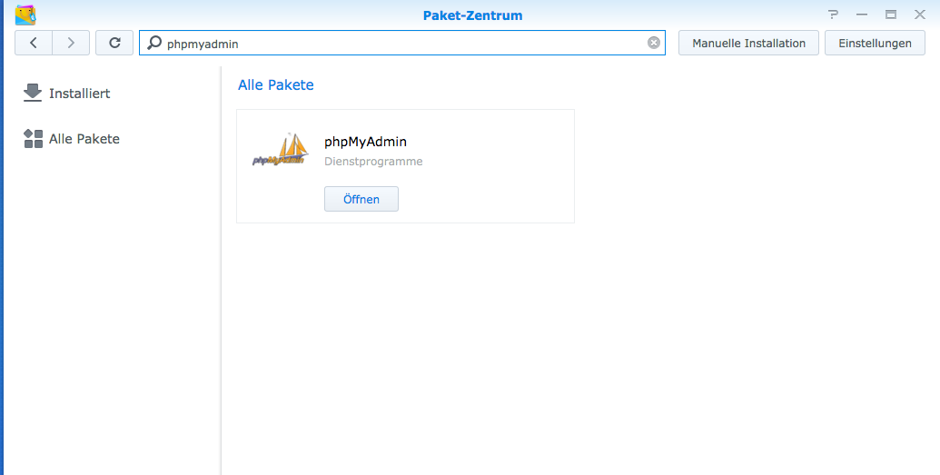 Damit die Datenbanken später konfigurieren und verwalten können, wird phpMyAdmin benöigt. Das Paket kannst du ebenfalls im Paketzentrum installieren.