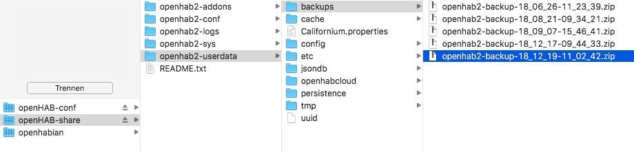 Wie schon bei früheren Updateanleitungen – Jedes Backup ist ein gutes Backup. Auch wenn im Normalfall alles gut geht kann immer mal etwas schief gehen. Dann freut man sich umso mehr, wenn die wichtigen Teile deine Umgebung gesichert sind. Dazu zählt in jedem Fall einmal die Konfiguration, deine Items, rules, etc. Nicht auszudenken, wenn plötzlich alles weg wäre und teilweise jahrelange Arbeit wegen eines fehlenden Backups nicht mehr da wäre.