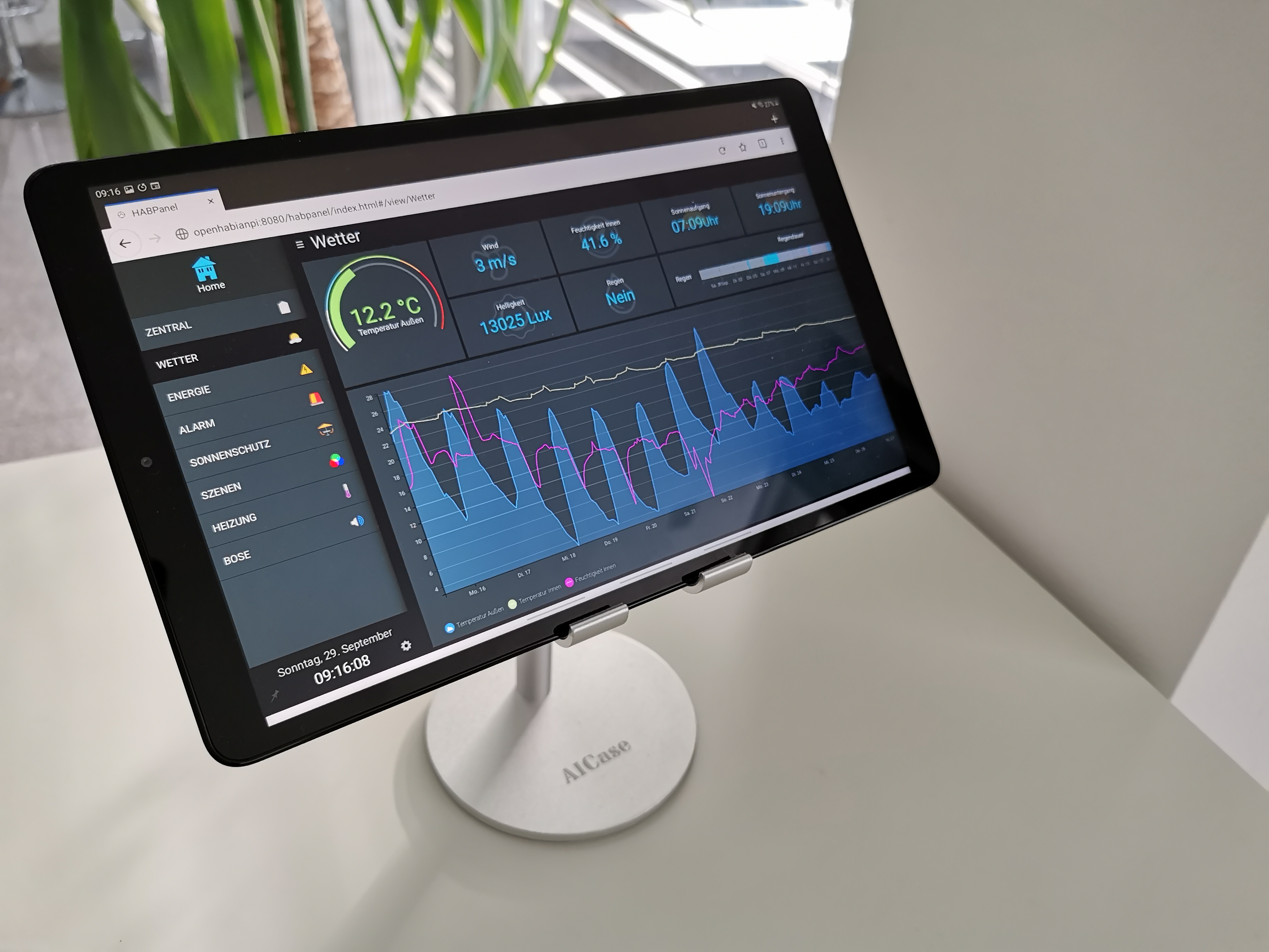 Das wars im Prinzip schon. Nun kann das openHAB HABPanel ganz nach den eigenen Wünschen konfiguriert werden und seinen Dienst verrichten. Bisher bin ich mit dieser Lösung sehr zufrieden. Vor allem im Hinblick auf Preis/Leistung. Nach meiner Erfahrung werden physische Schalter und Displays mit zunehmender Automatisierung und Sprachsteuerung immer seltener bedient, so dass eine aufwändige Wandmontage einer Zentralsteuerung nicht zwingend nötig ist – toll ist es natürlich dennoch 😀